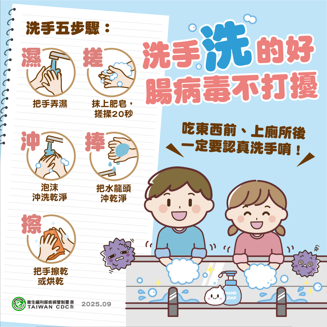 腸病毒傳染力強,請共同落實勤洗手、環境與玩具清潔消毒,並留意幼兒健康狀況。
