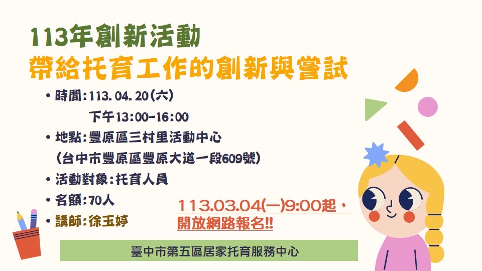 4/20  13:00-16:00 - 帶給托育工作的創新與嘗試