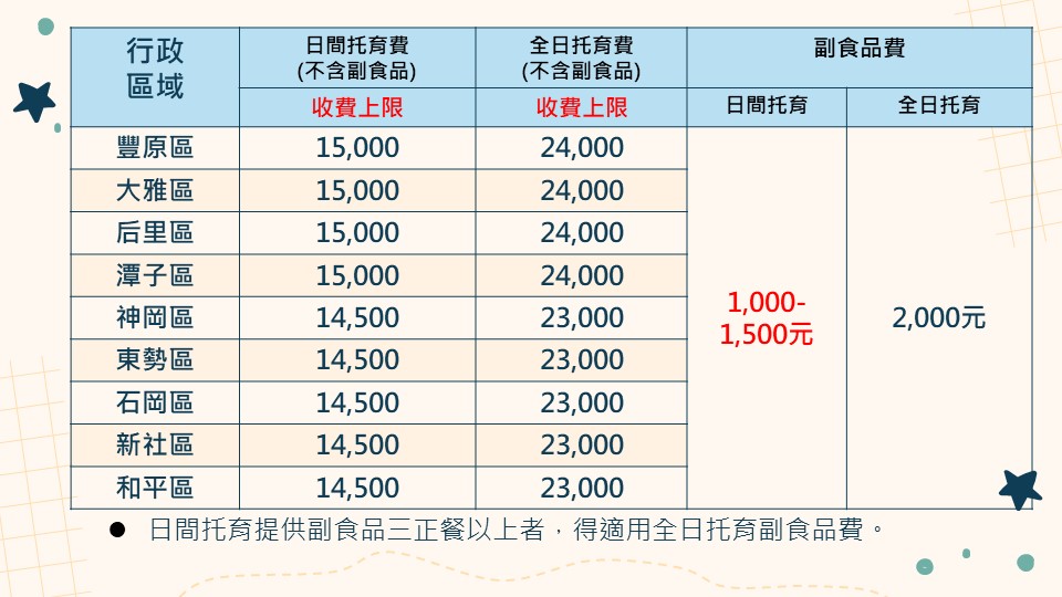 臺中市居家式托育服務收退費項目及基準函文公告