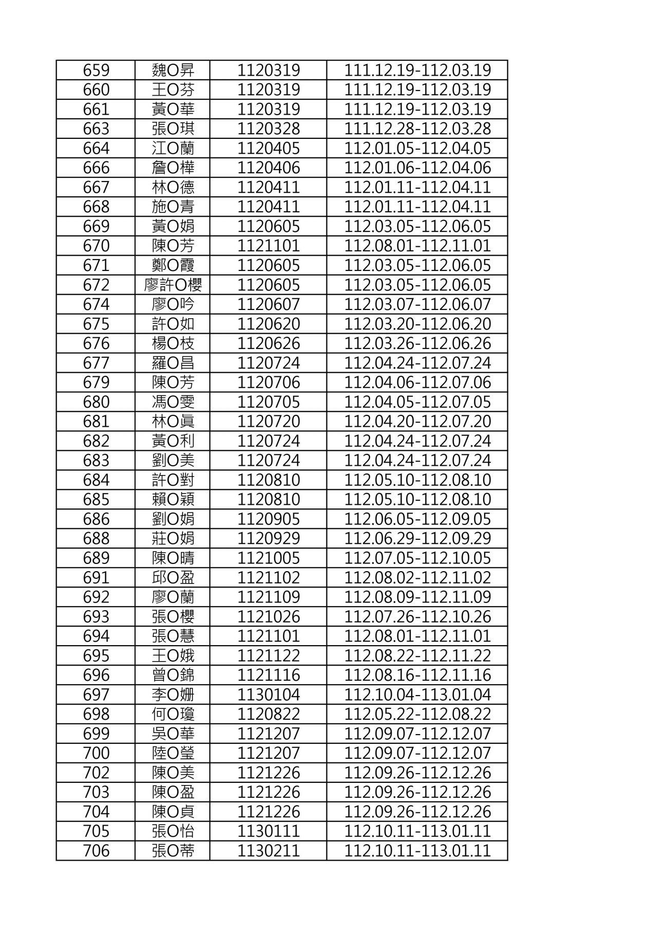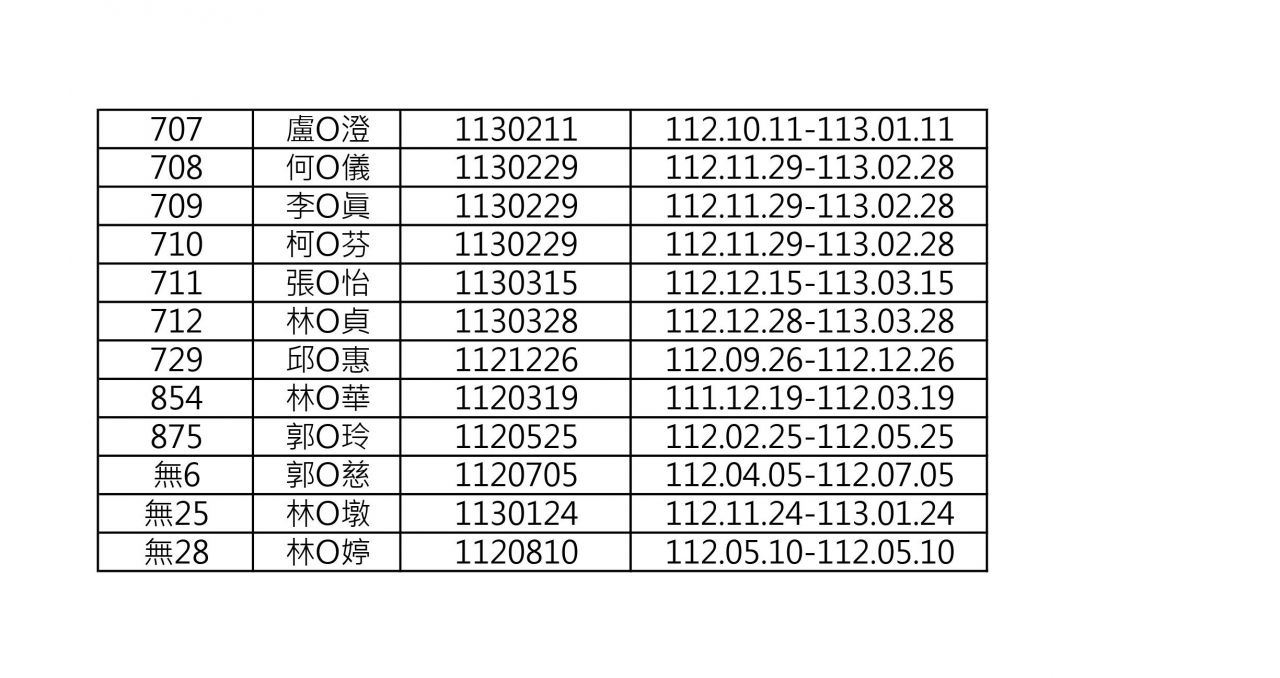 112年度登記證六年屆滿需換證名單如下表(共計3頁),