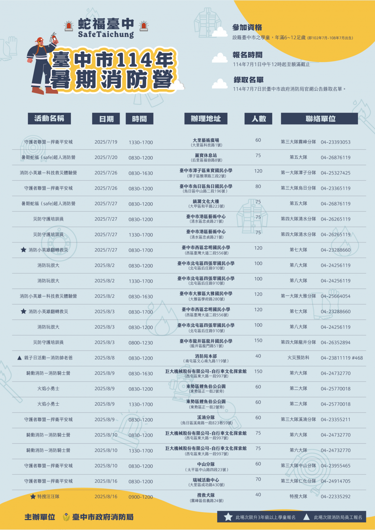 參加資格:設籍臺中市學童,年滿6~12足歲