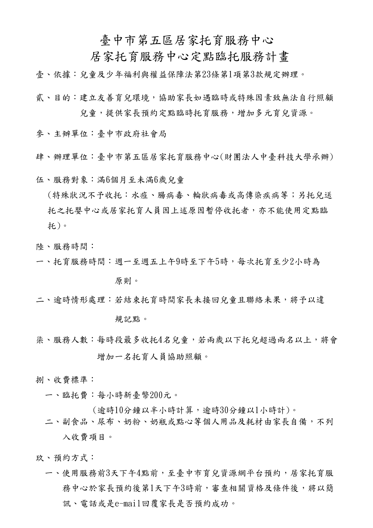 #臺中市第五區居家托育服務中心定點臨時托育預備開辦囉!!