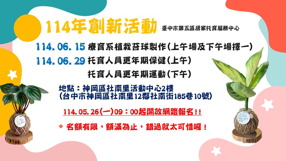 ※地點:神岡區社南里活動中心2樓(臺中市神岡區社南里12鄰社南街185巷10號)