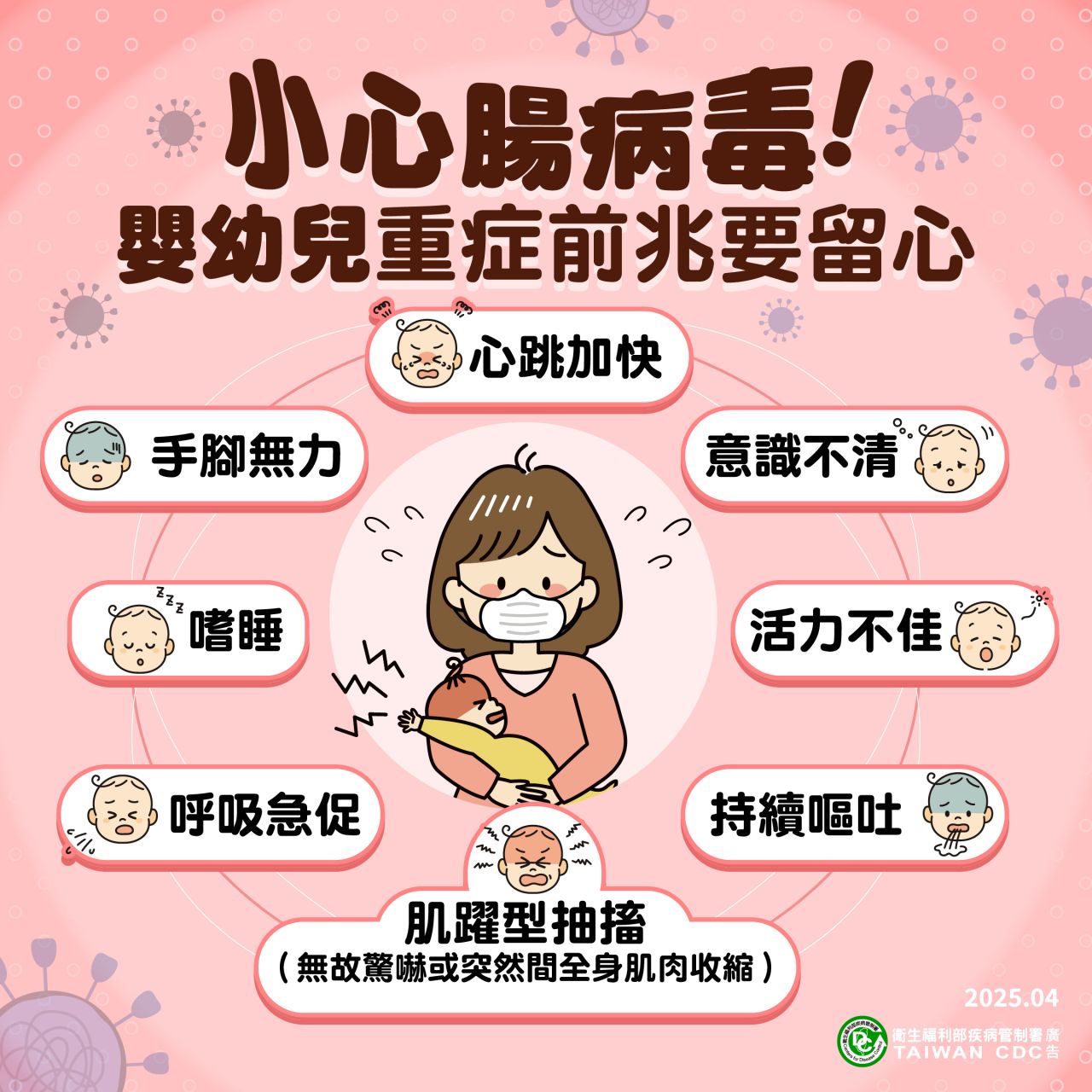 腸病毒傳染力強,請共同落實勤洗手、環境與玩具清潔消毒,並留意幼兒健康狀況。