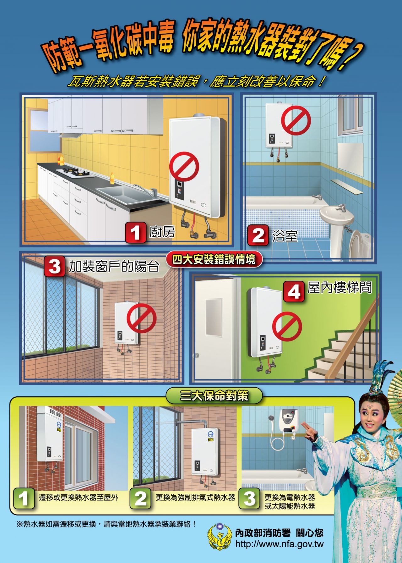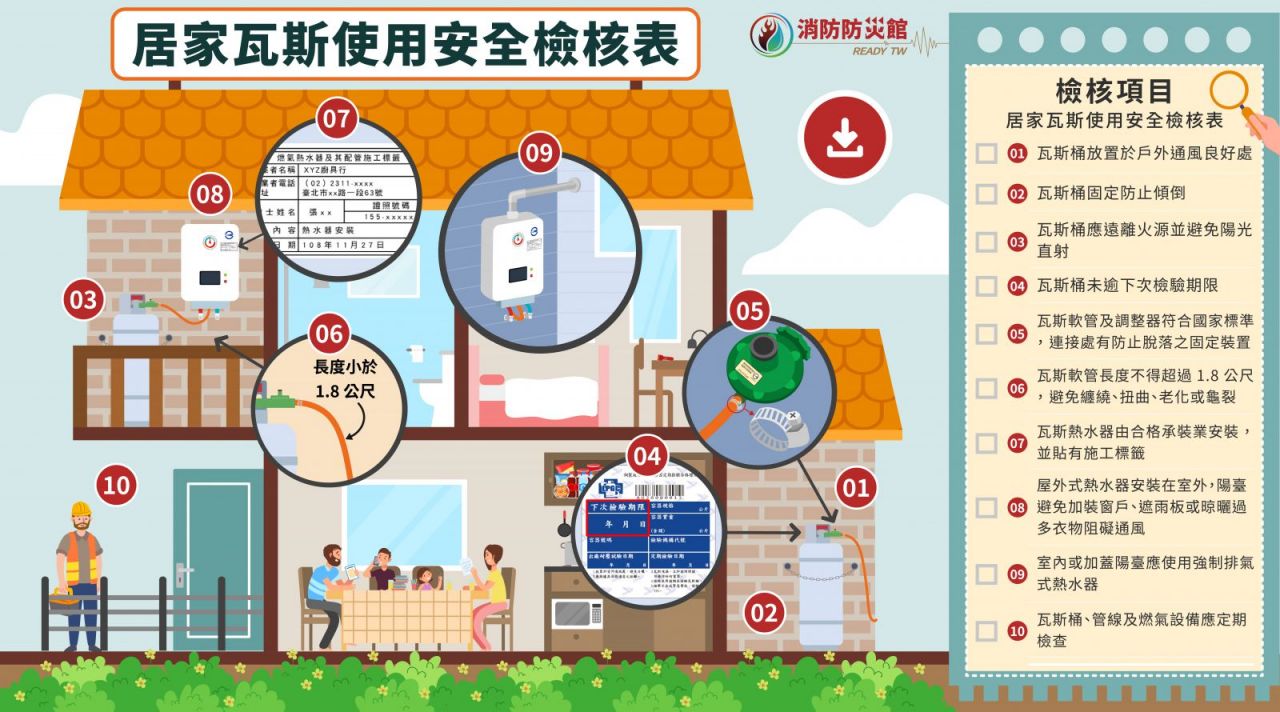 天氣寒冷,使用燃氣熱水器勿因天冷而門窗緊閉,以免通風不良造成一氧化碳中毒