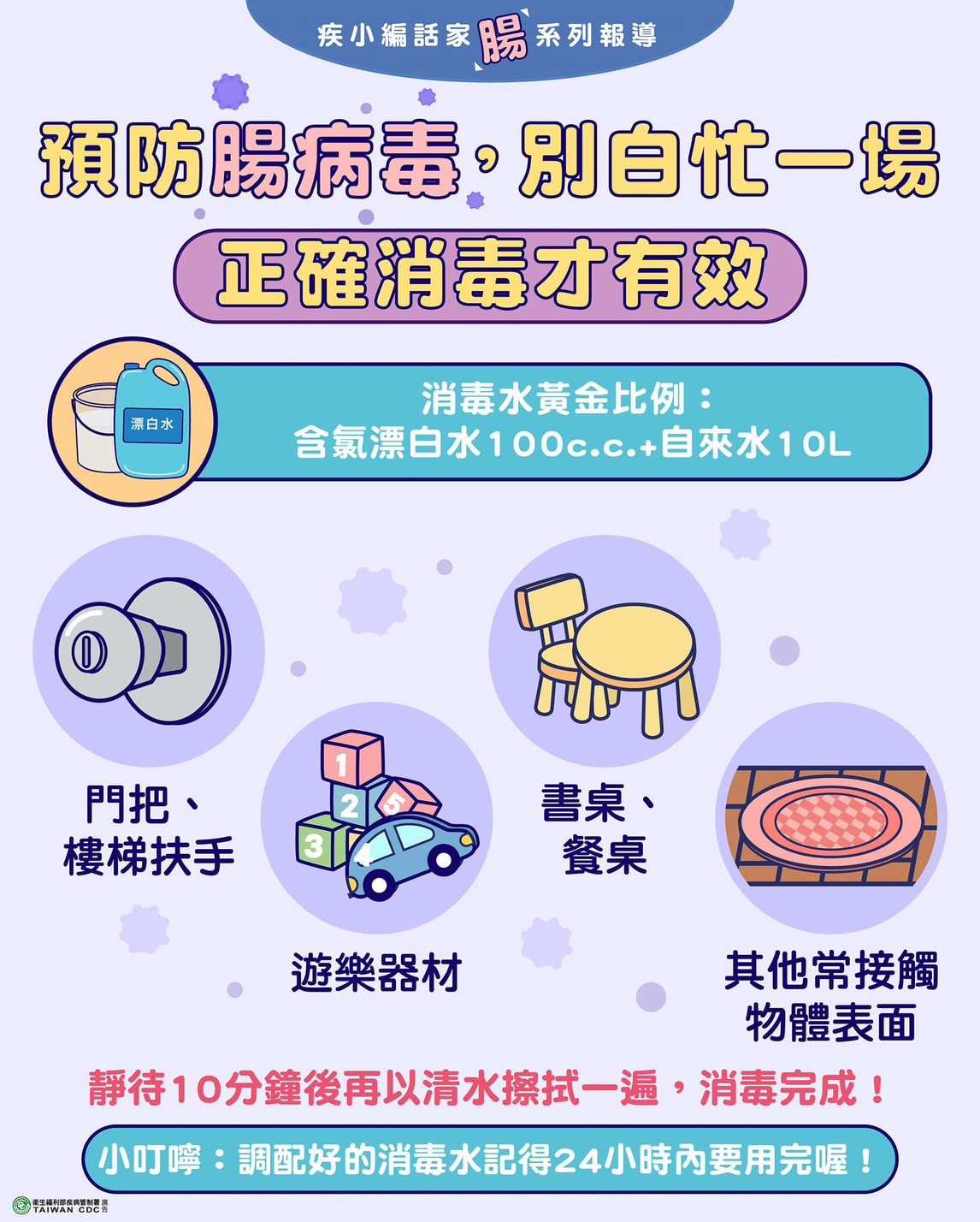 別忘了~居家托育環境也要加強消毒唷!!