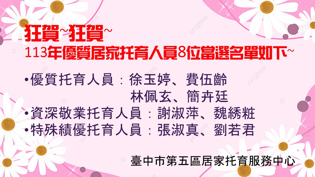 113年優質居家托育人員8位當選名單