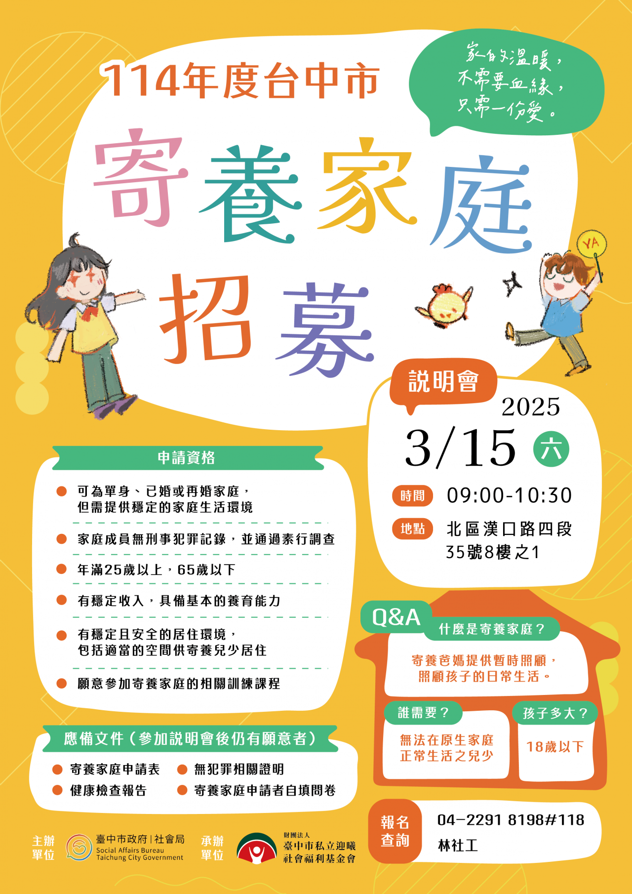 114年度臺中市寄養家庭招募!!