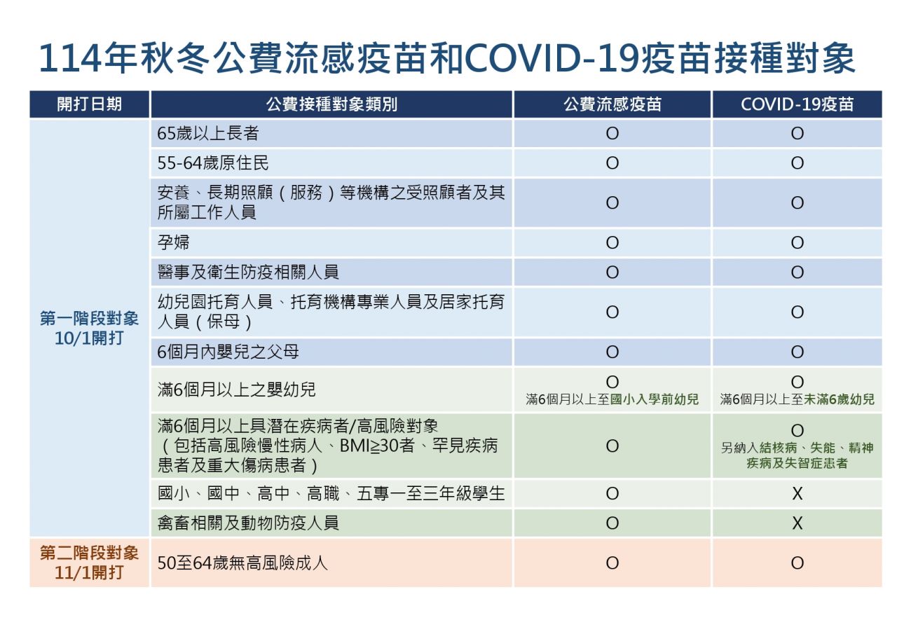 秋冬公費流感疫苗和新冠疫苗預計