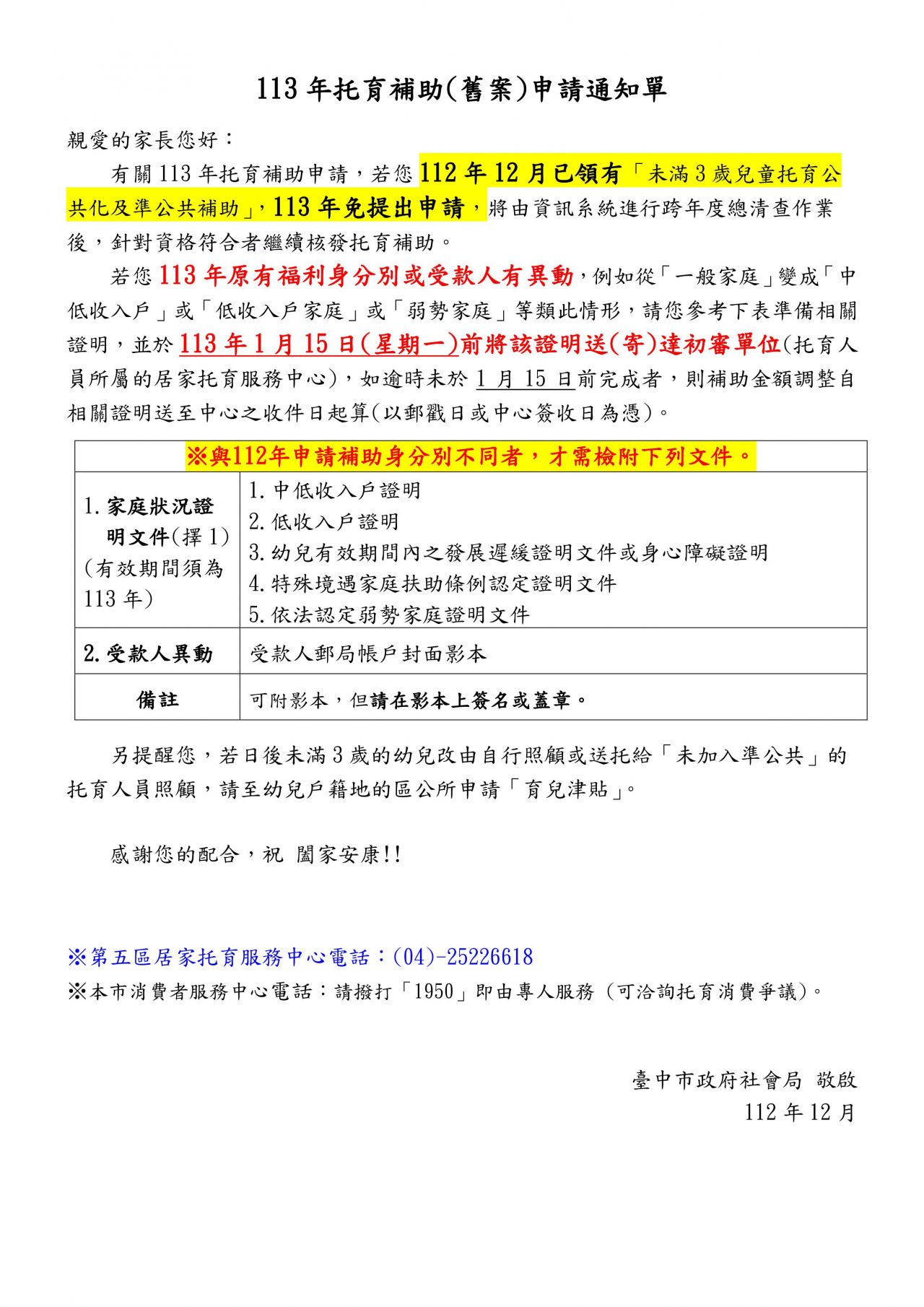 (重要)修訂「臺中市居家在宅/居家到宅托育服務契約範例」113年9月24日起《建議》適用