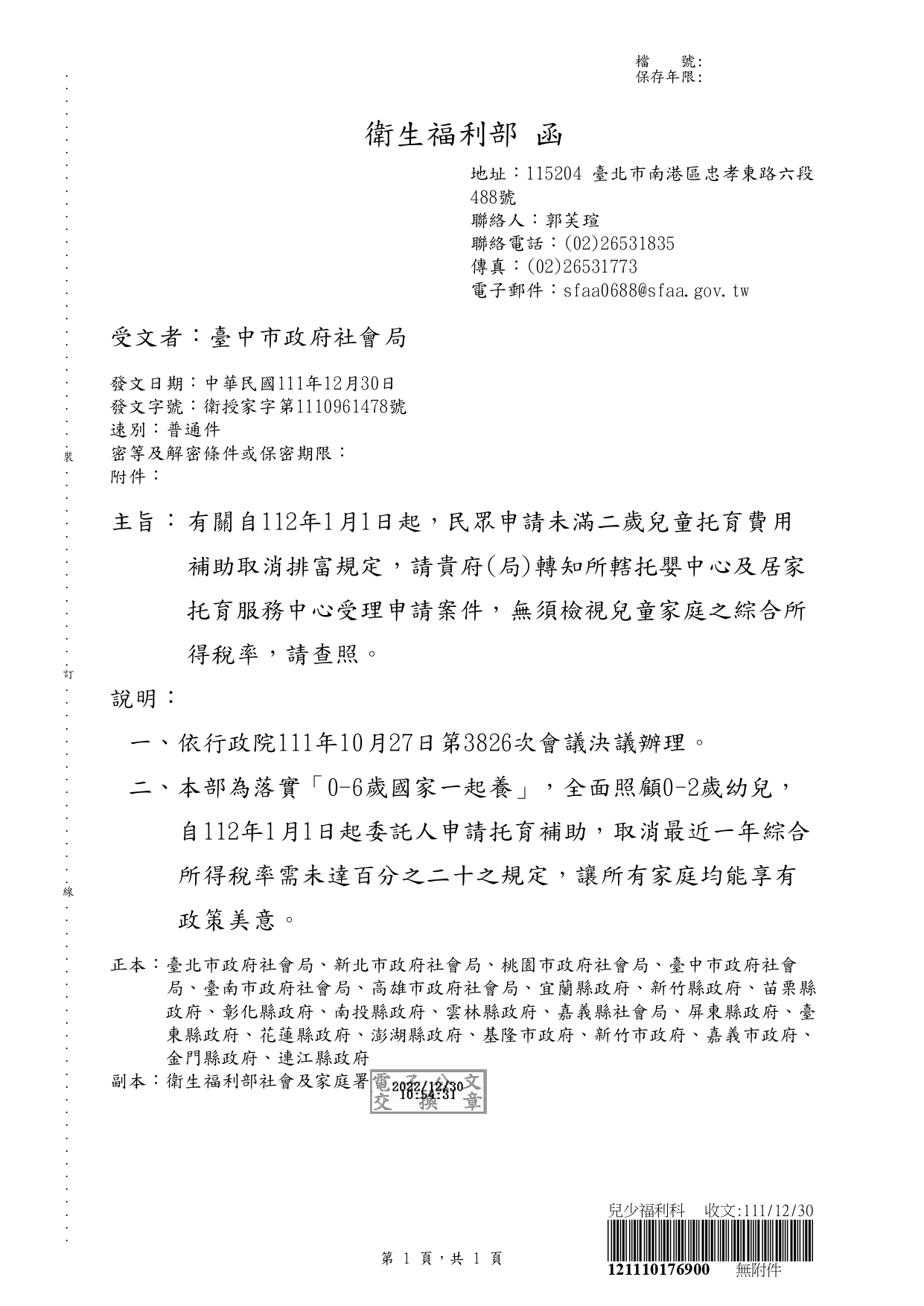 [重要公告]自112年1月1日起,0-3歲托育補助取消排富規定
