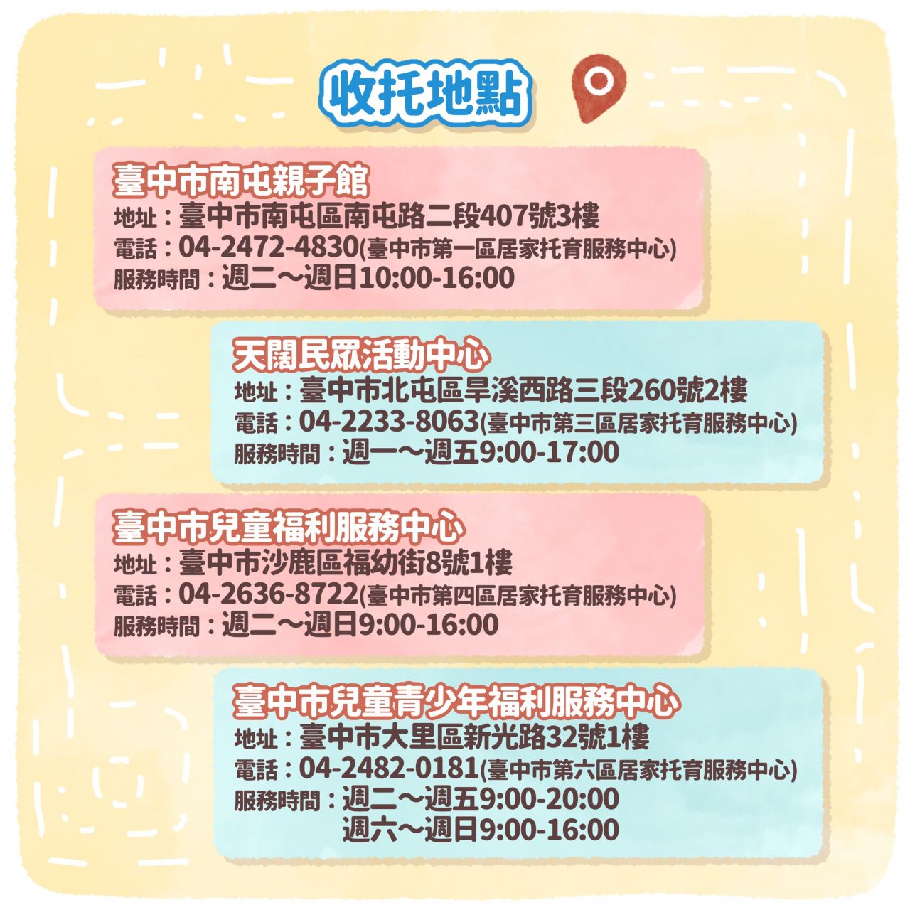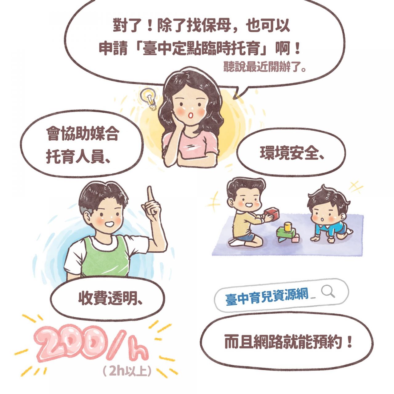 臺中市定點臨時托育服務開辦囉!